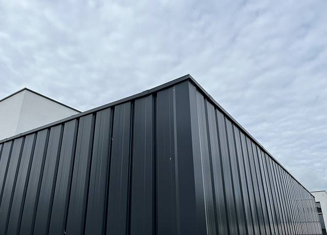 Après avoir écumé les options, son choix s'est porté sur tolesmoinscheres.com, et il ne le regrette pas. Il n'a pas hésité longtemps devant nos tôles de bardage 63/100 5 ondes en Gris Anthracite RAL 7016.